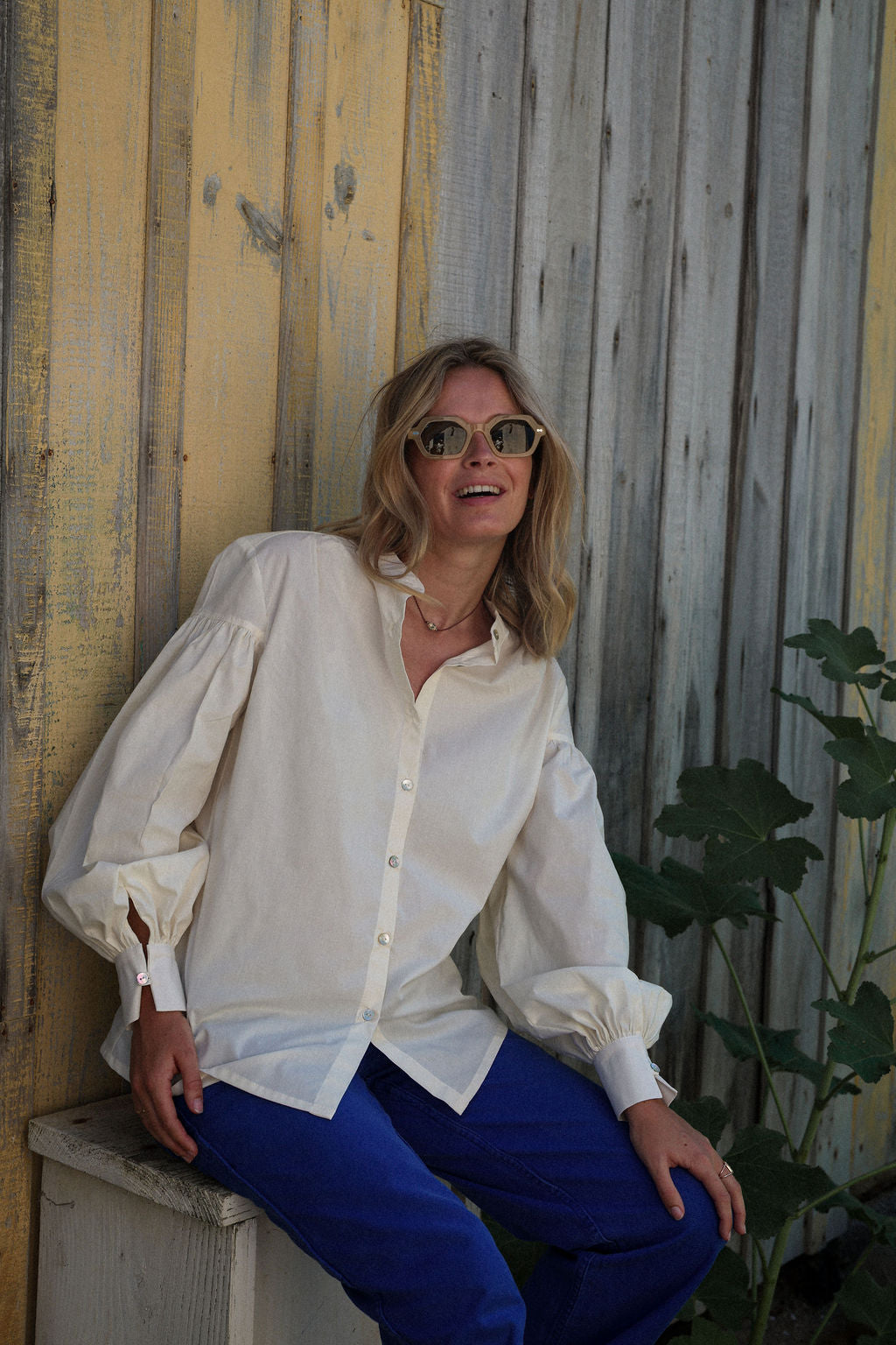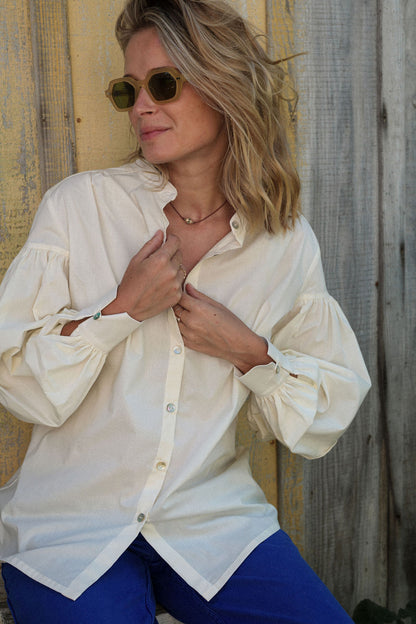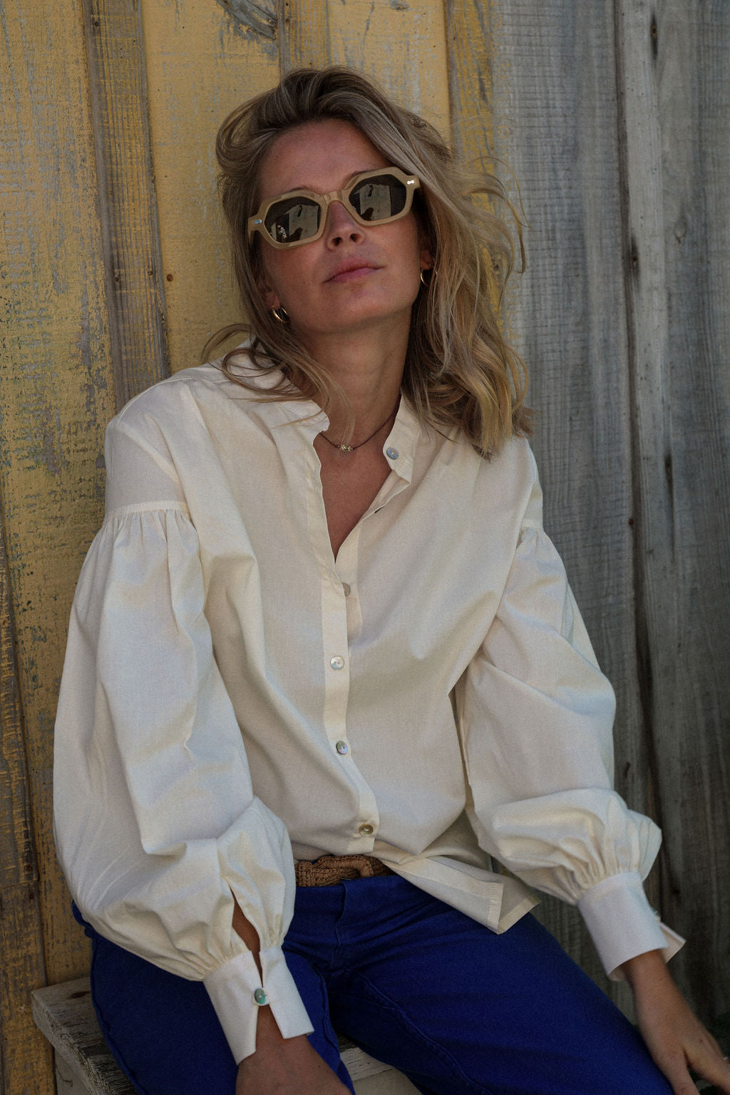 LANCELOT est une blouse romantique et sophistiquée à la fois ! Un de nos modèles qui nécessite le plus de finitions ; petit col Mao pour cette version vanille très lumineuse , épaules structurées et très travaillées, un très beau volume au poignet, beaucoup de fronces délicatement parsemées . Lancelot c'est l'alliance parfaite de l'élégance et du cool !