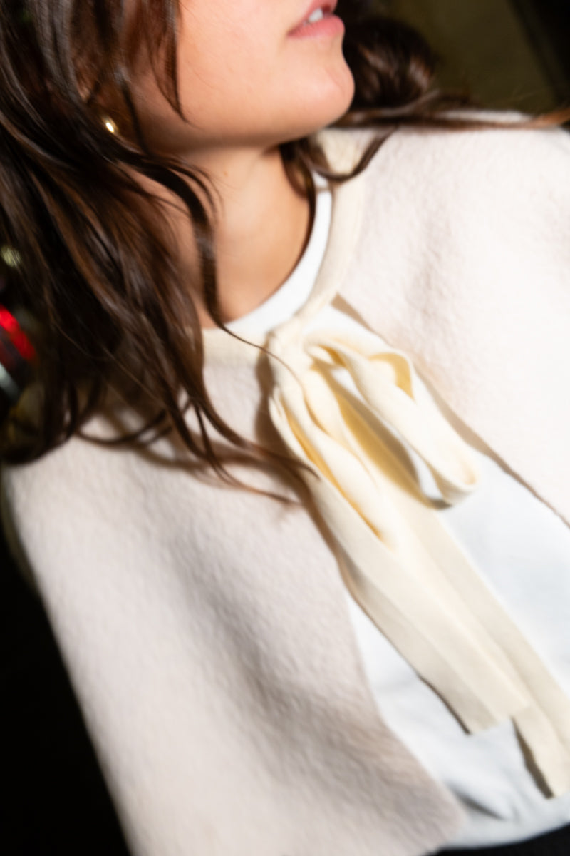 Confectionnée en laine bouillie, toute festonnée, elle se porte comme un véritable accessoire pour réchauffer nos chemisiers ! Un charme fou et un style adorable !