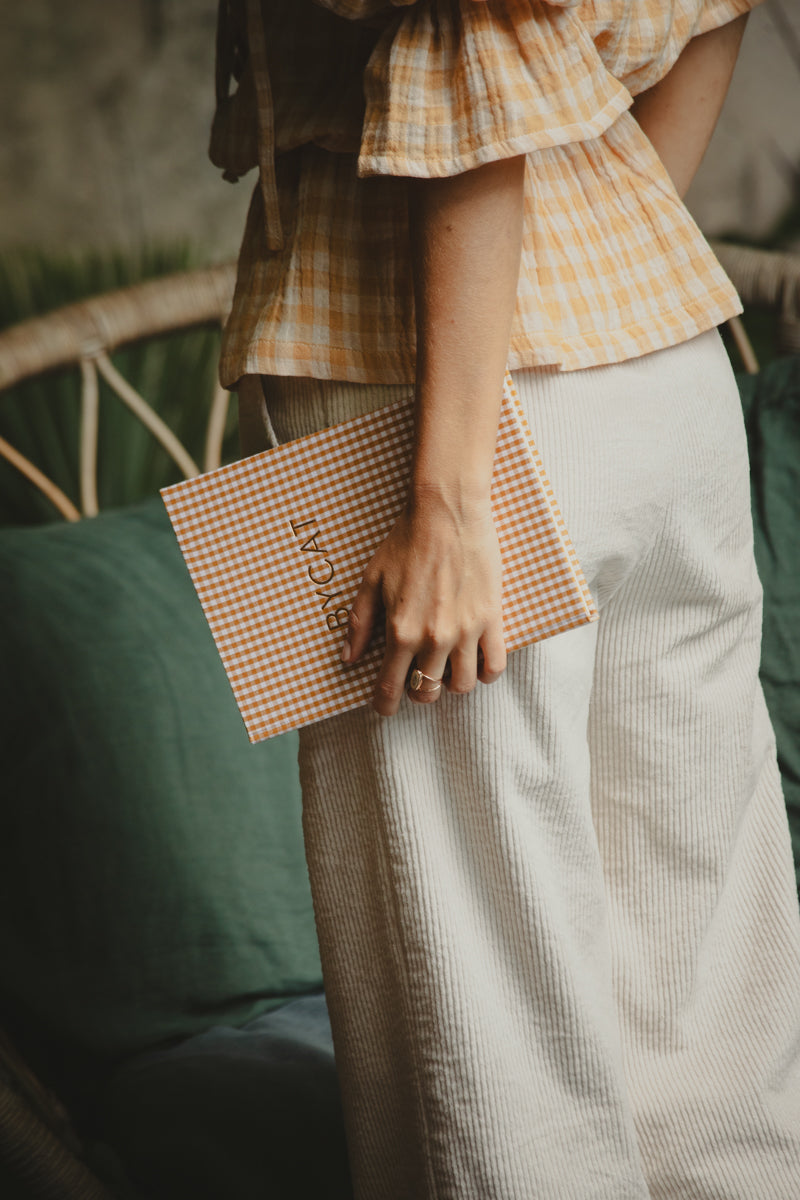 Découvrez le carnet personnalisé BYCAT ! Ce très bel objet réalisé en coton vichy safran, au format A5, doté de 170 pages pour vous aider à organiser vos pensées et vos projets au quotidien !