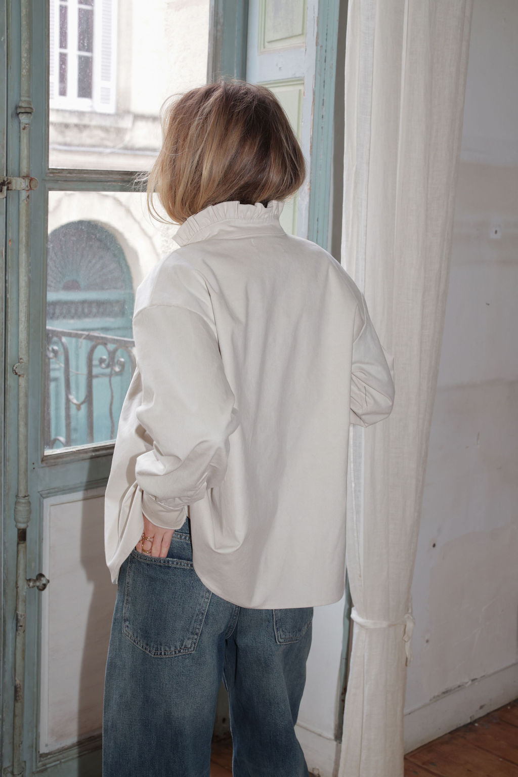 " Je l'imagine aussi bien portée en été qu'à la mi saison, chic et intemporelle, la chemise GISÈLE est très versatile et sera à coup sûre une pièce maitresse de votre dressing ! "