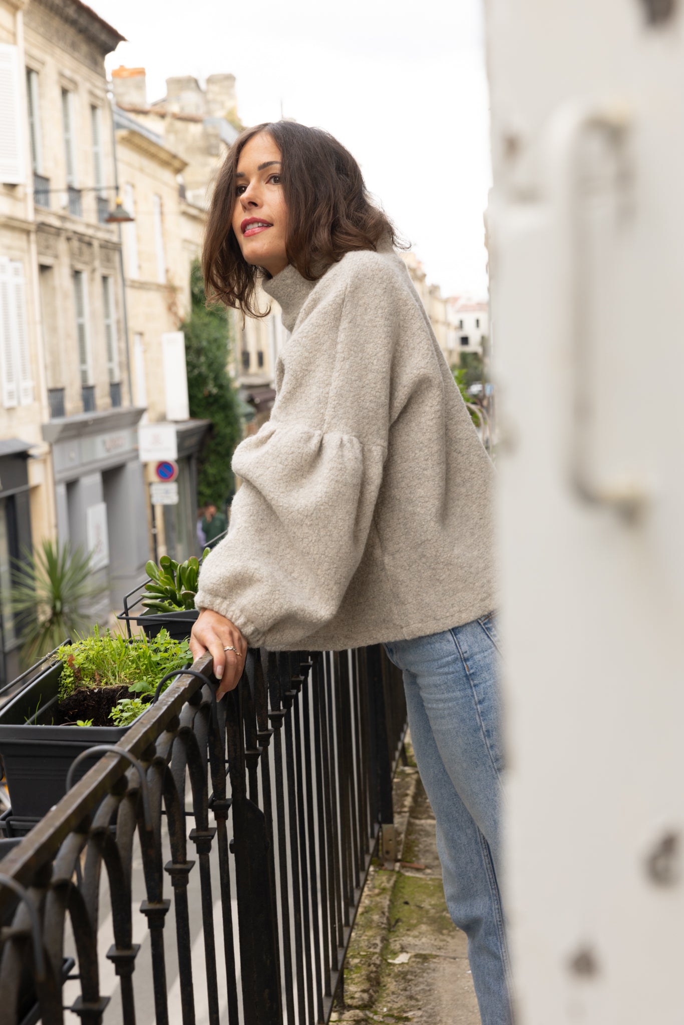 "J'aime cette version adorable et cosy, confectionnée dans un magnifique lainage bouclette. PLUME se glisse dans notre vestiaire pour nous tenir bien chaud avec une touche de fantaisie et un style résolument charmant !"