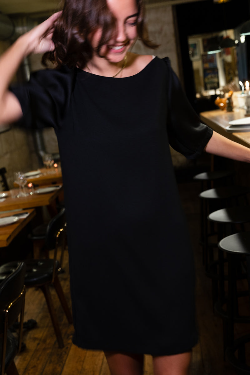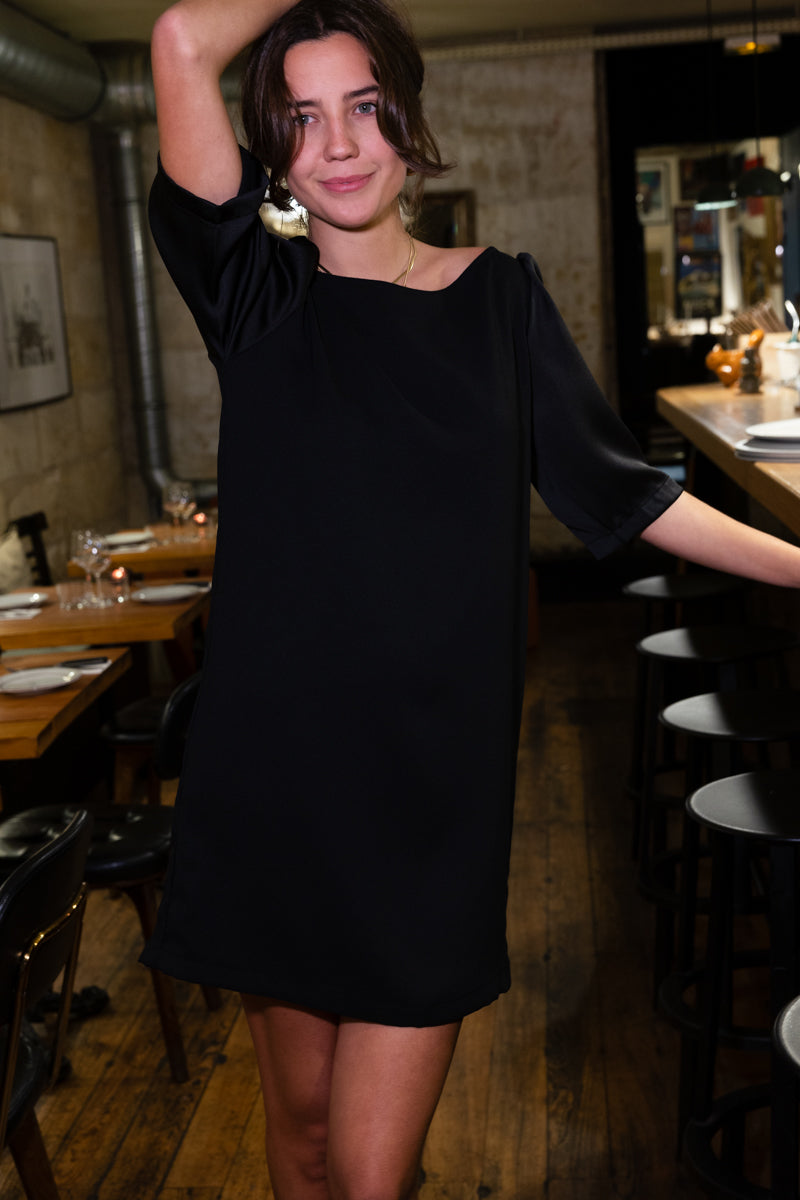 Nous avons choisi de décliner notre adorable top MALO pour une une jolie robe infiniment chic et intemporelle. Son tombé est fluide et élégant. Épaules froncées / encolure bateau / manches contrastée en satin aux coudes. La petite robe MALO n'est définitivement pas une petite robe comme les autres, la sobriété de sa coupe et ses manches en satin sont d'une élégance rare .